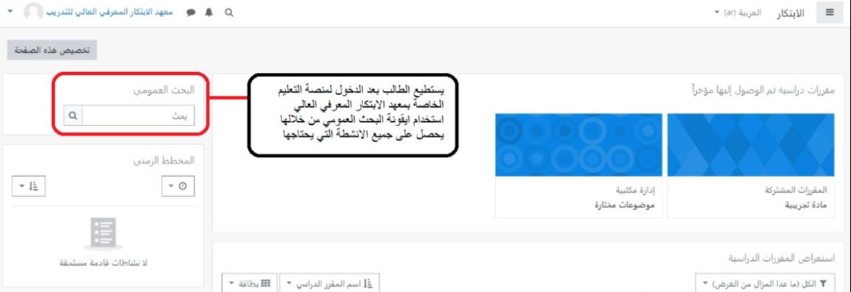عند الضغط علي ايقونة البحث سيظهر لك المقررات التي بحثت عنها